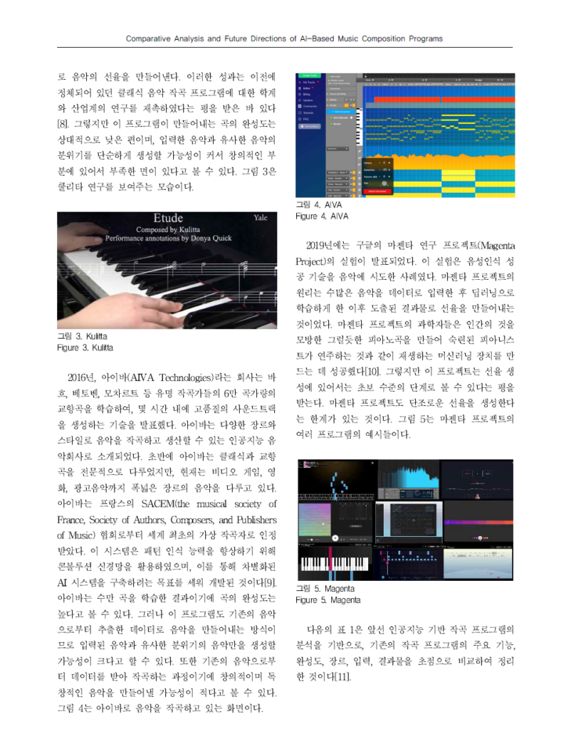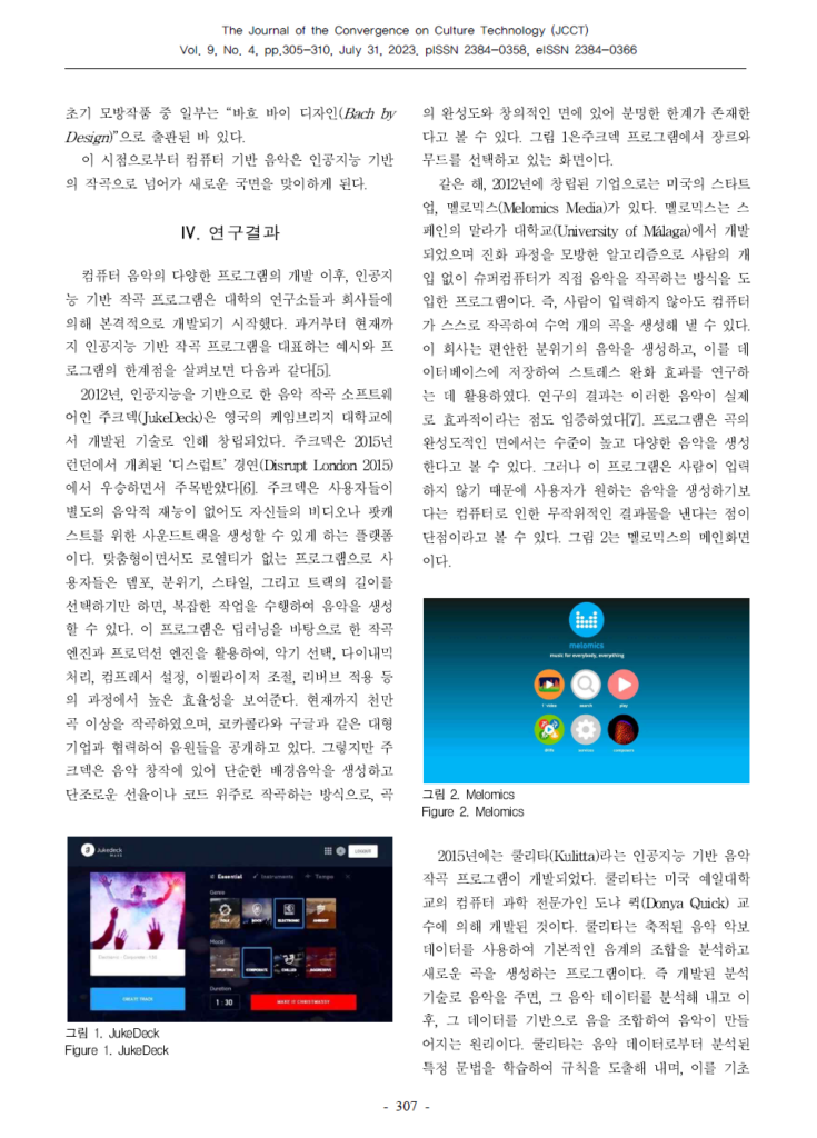 The Journal of the Convergence on Culture Technology, Vol. 9, No. 5Comparative Analysis of and Future Directions for AI-Based Music Composition ProgramsAUTHOREun Ji ParkYearJuly, 2023